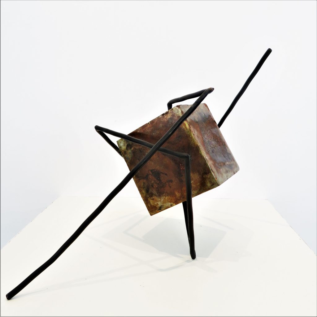 Cube sur ligne brisée – 2019 – Dim.: 33 x 25 x 17 cm -acier oxydé, acier peint –