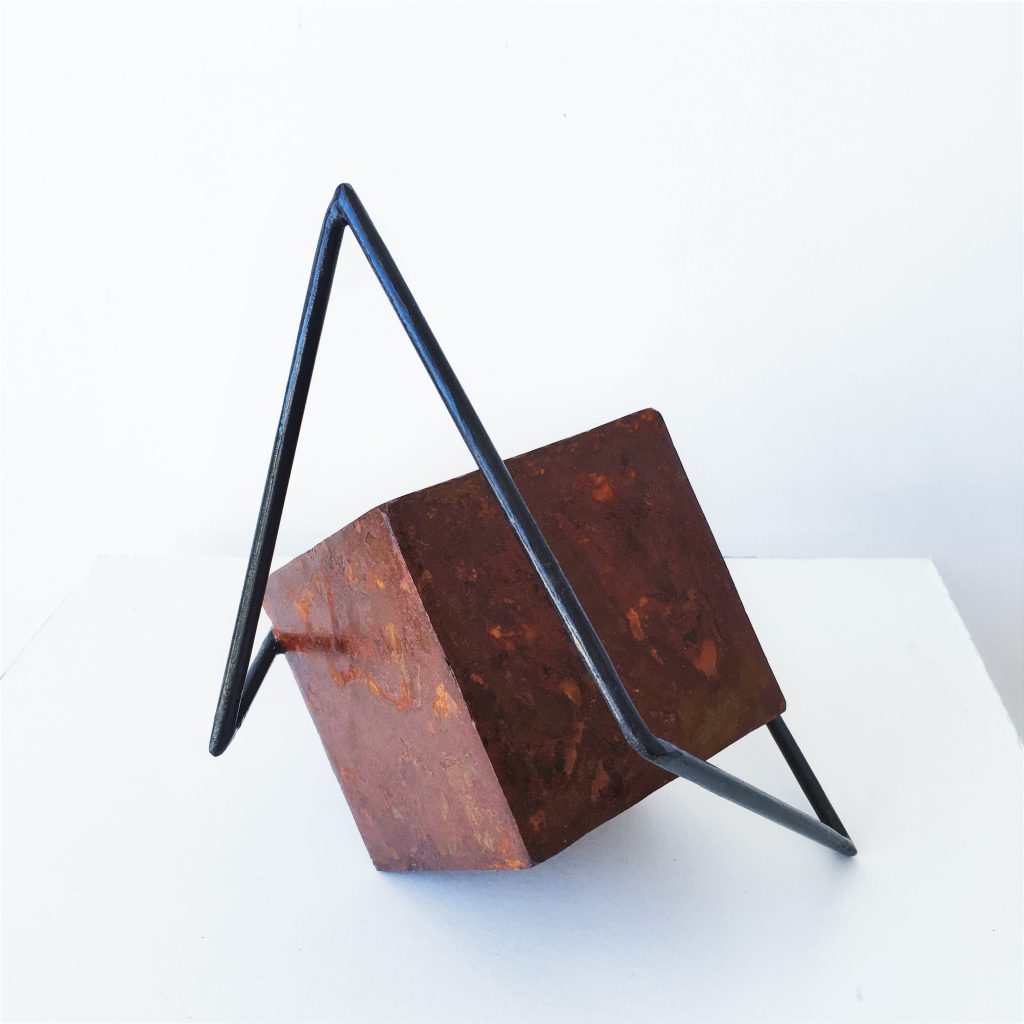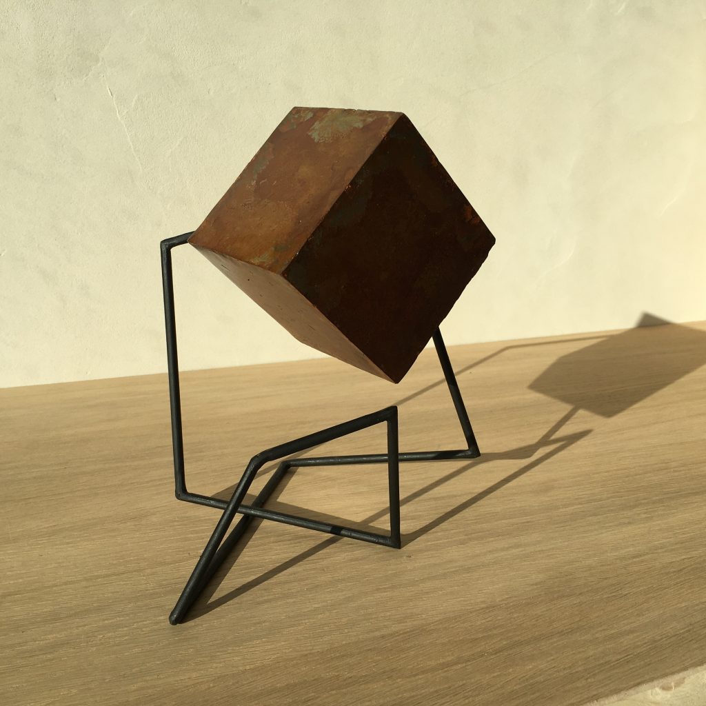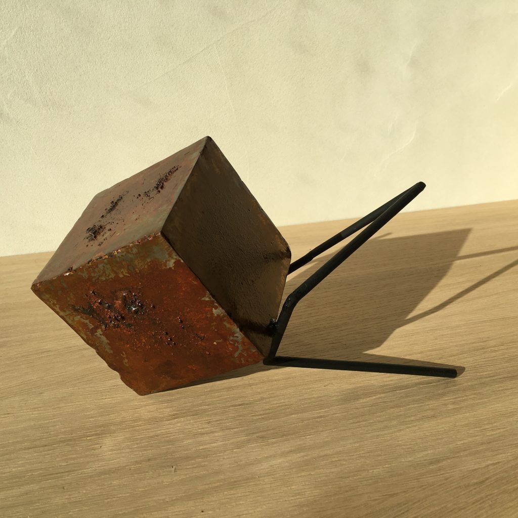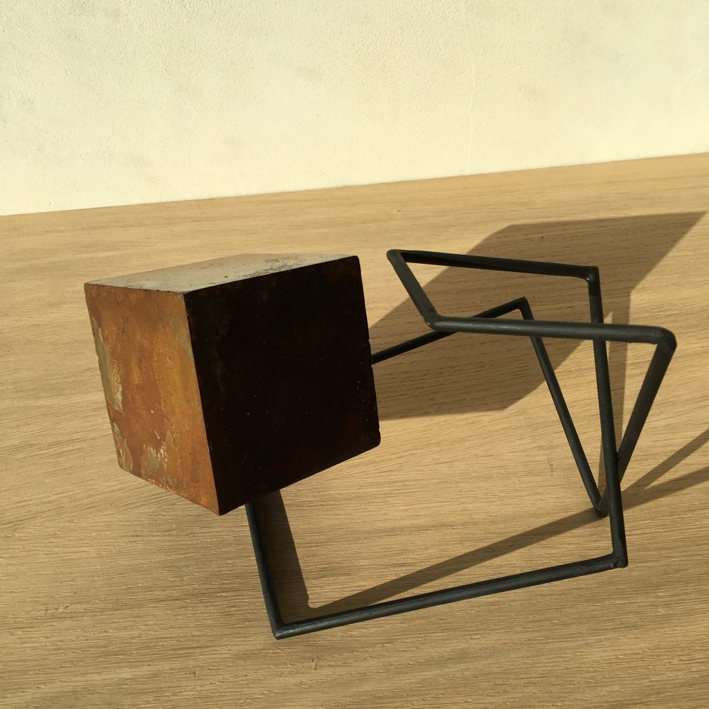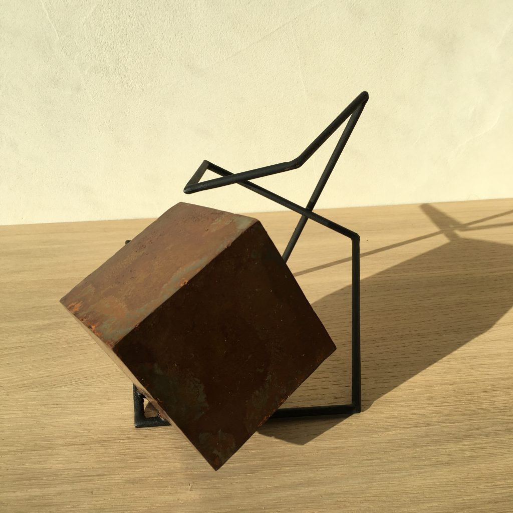 Cube sur ligne – 2019 – Dim.: 28 x 13 x 15 cm – acier oxydé, acier peint –