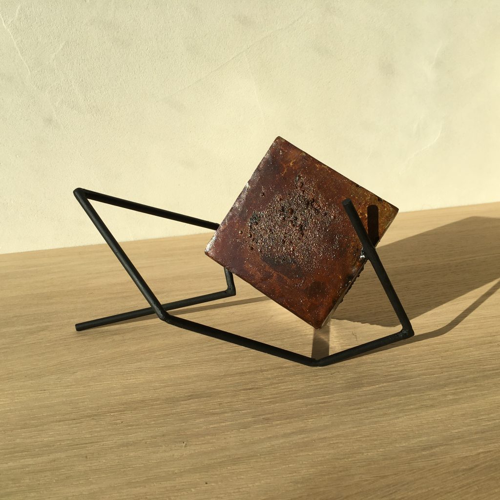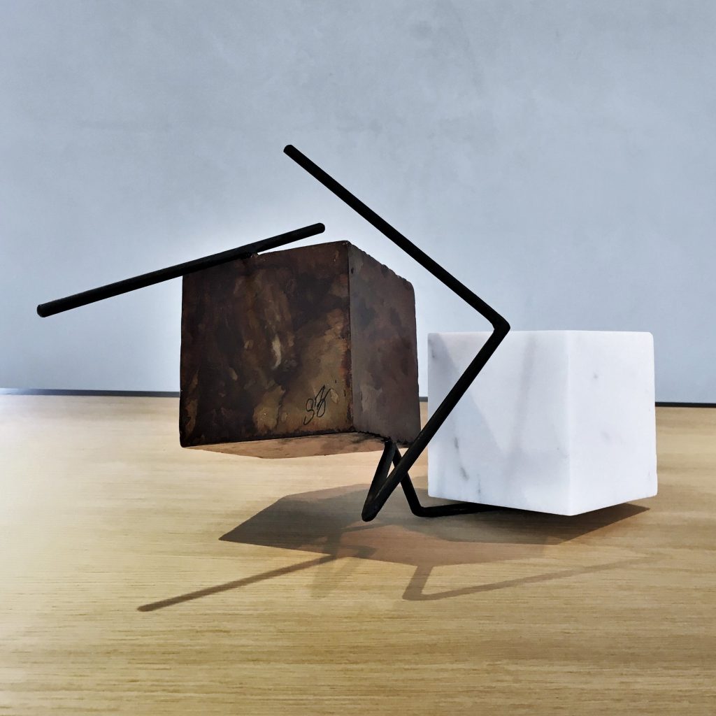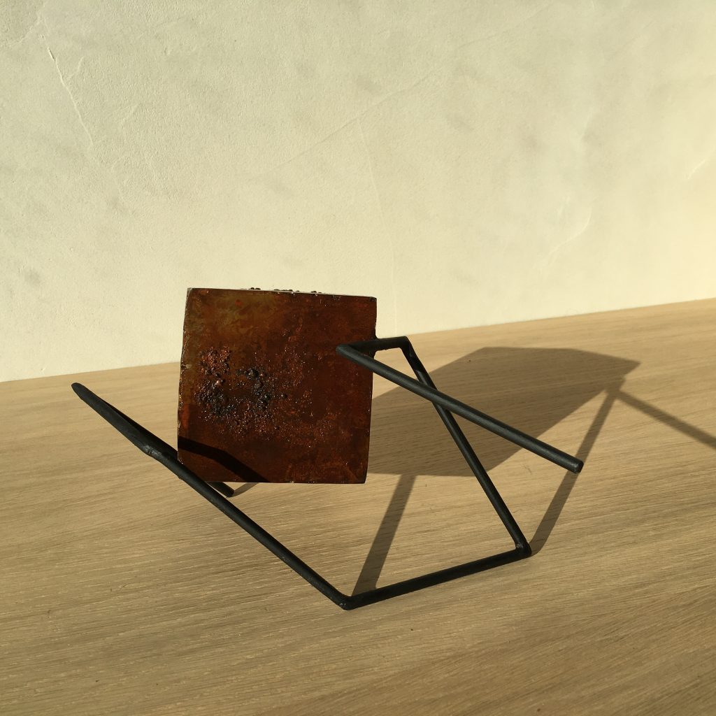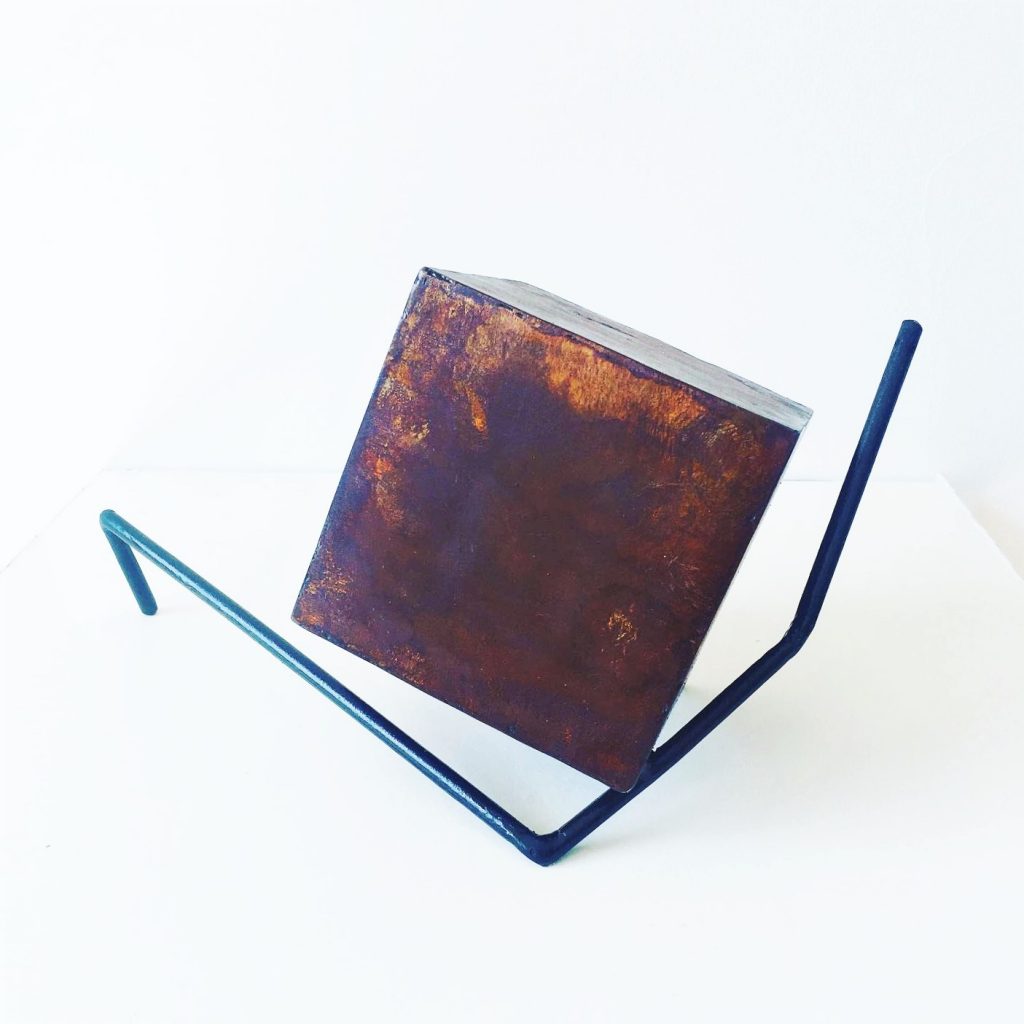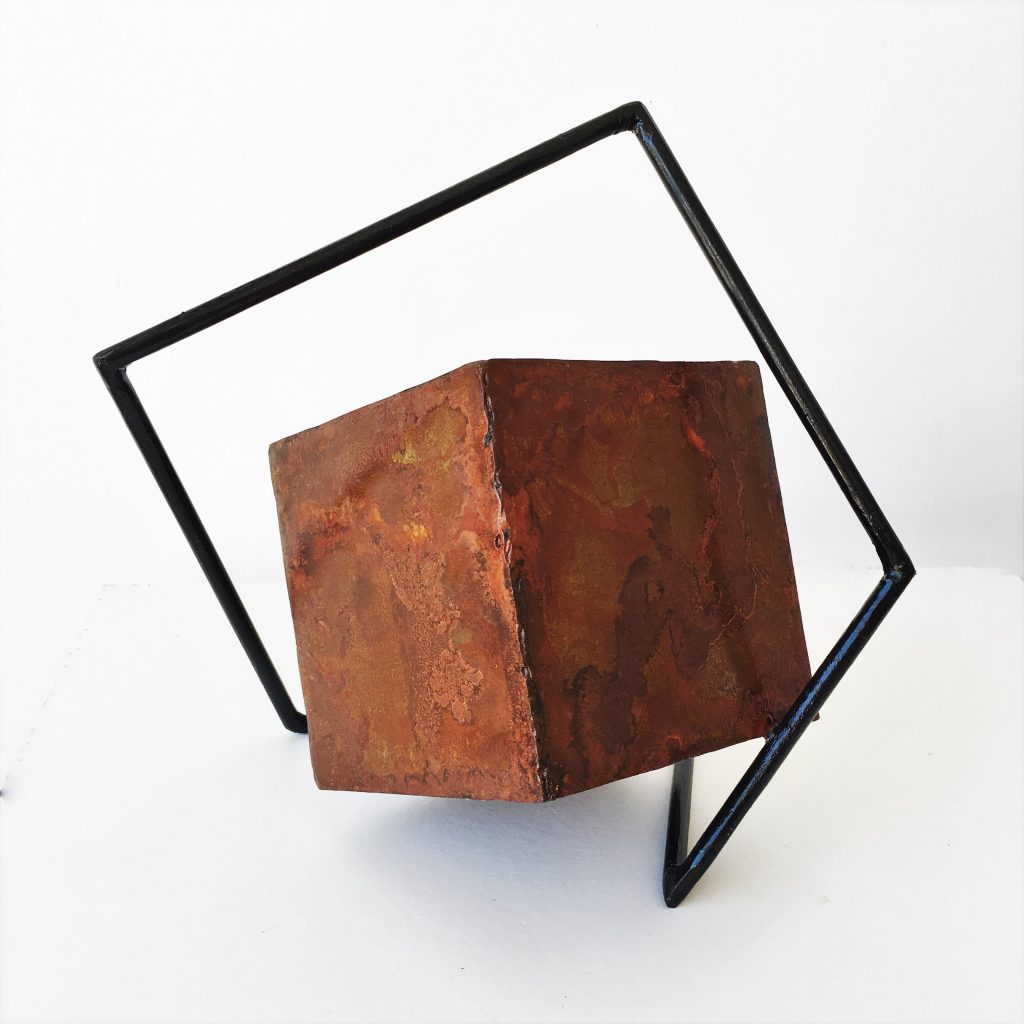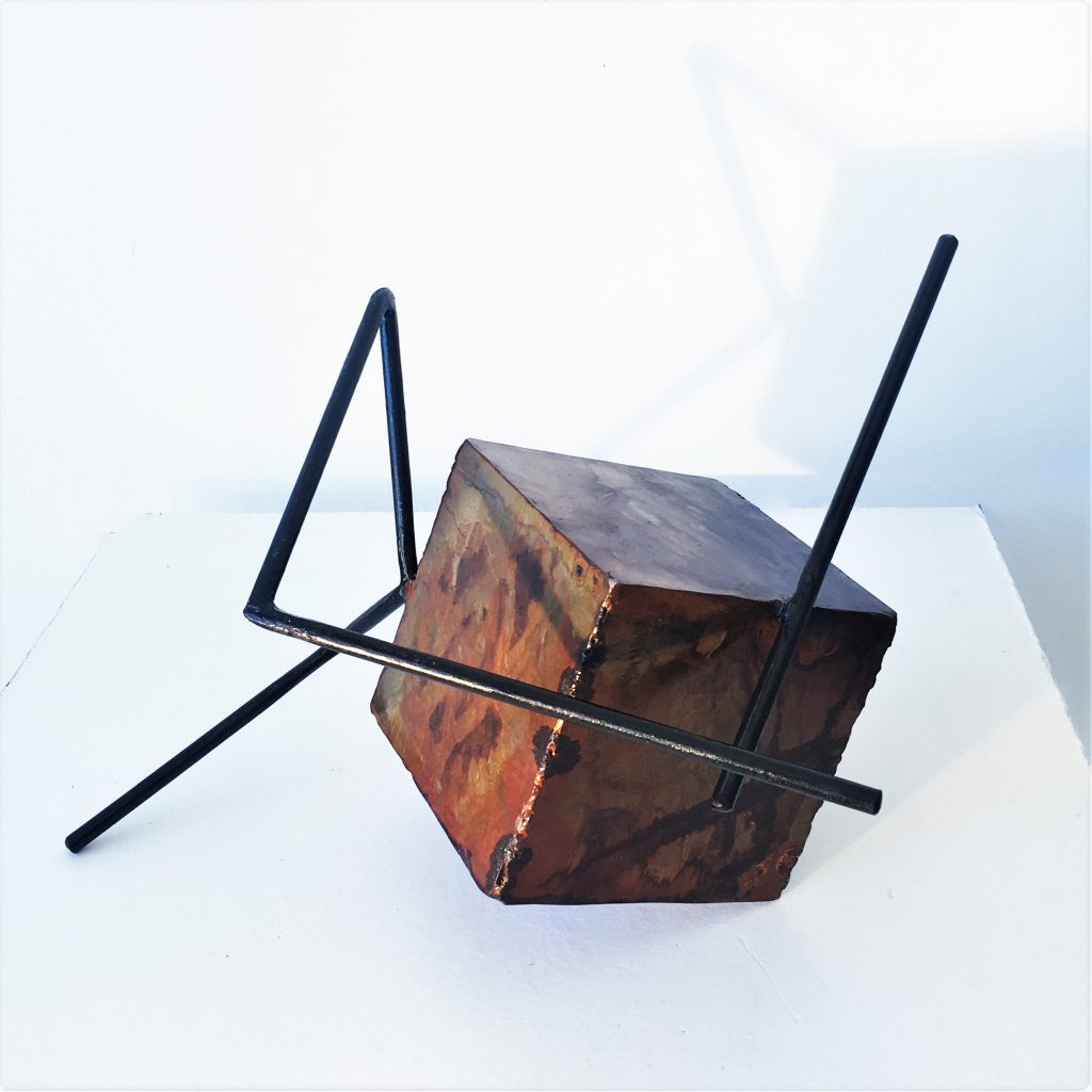 Cube sur ligne – 2019 – Dim.: 28 x 13 x 15 cm – acier oxydé, acier peint –