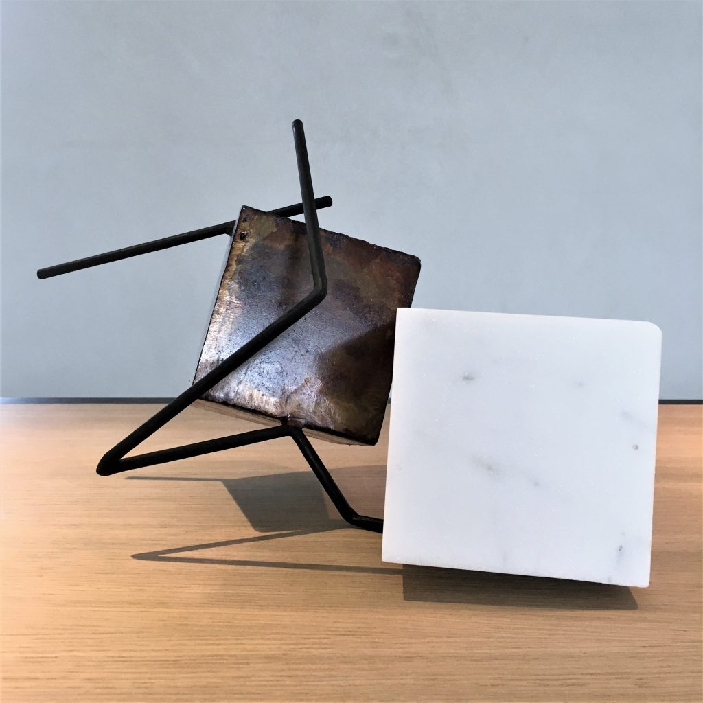 Ames soeurs– 2021 – Dim.: 36 x 25x 22 cm – acier oxydé, acier peint, marbre de Carrare –